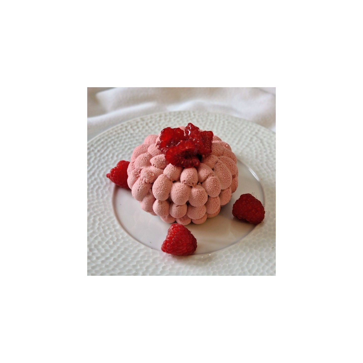 Une ganache montée au chocolat Inspiration framboise de Valrhona vient décorer ce gâteau