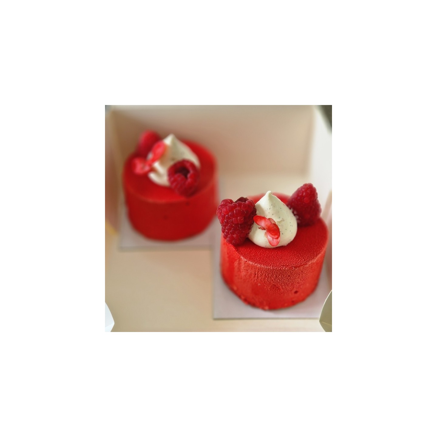 Ce biscuit se compose d’un biscuit amande Bio, d'une mousse légère à la vanille Bio de Madagascar, d'une compotée de framboises avec des framboises fraîches .