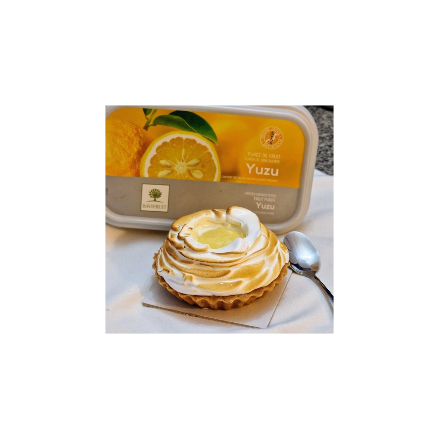 Plongez au cœur de la fraîcheur exotique. Inspirée par l’harmonie naturelle du yuzu, cette tarte marie l’intensité pétillante des agrumes à la douceur légère d’une meringue suisse