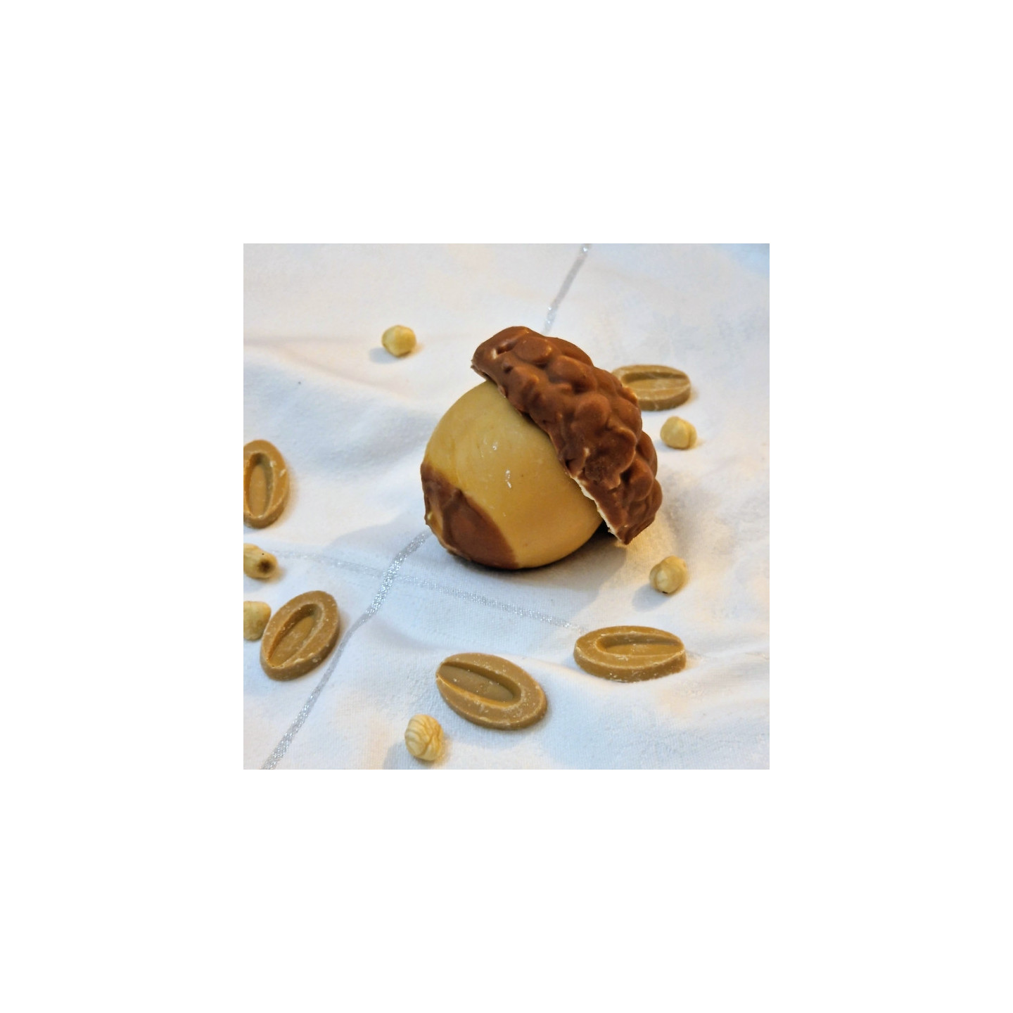 Le trompe l'oeil est recouvert d'un chapeau composé d'une ganache à la vanille Bio et nappé de chocolat au lait Jivara.
